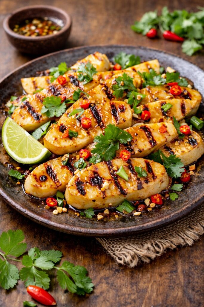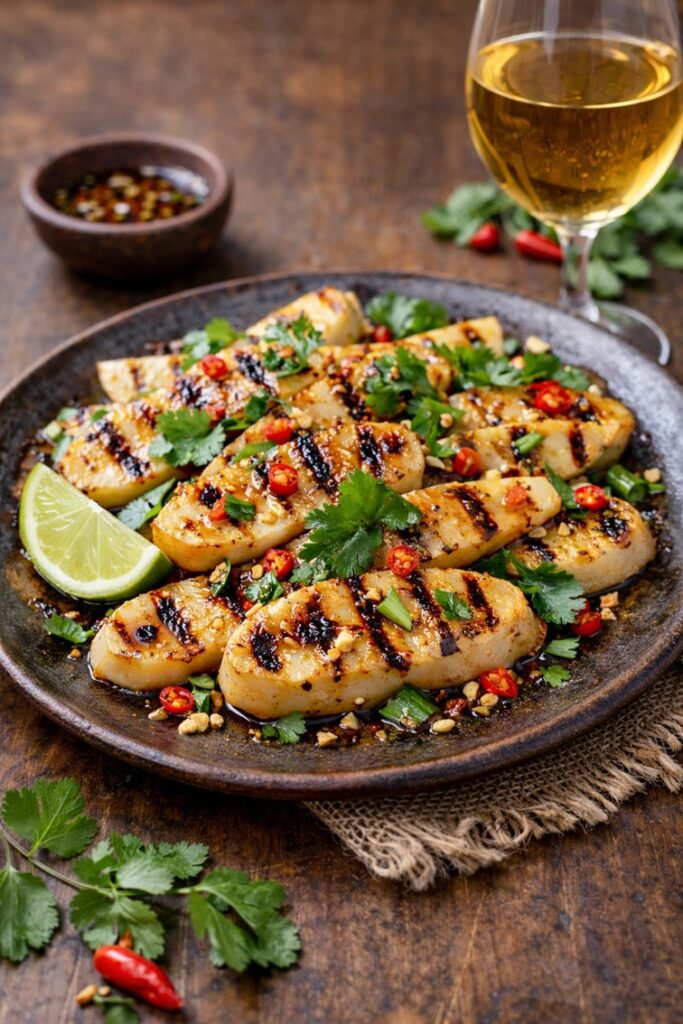 Grilled Thai-Style Palm Hearts are tender and lightly smoky, with a juicy bite and subtle sweetness, brushed with a fragrant Thai marinade. Finished with a gentle char and bright herbs, they’re fresh, savory, and irresistibly moreish, plant-based but deeply satisfying